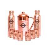 - Package Includes: 1 Copper Jug (1500 ml), 2 Pure Hammered Copper Bottles (1000 ml) and 6 Copper Glasses (300 ml)